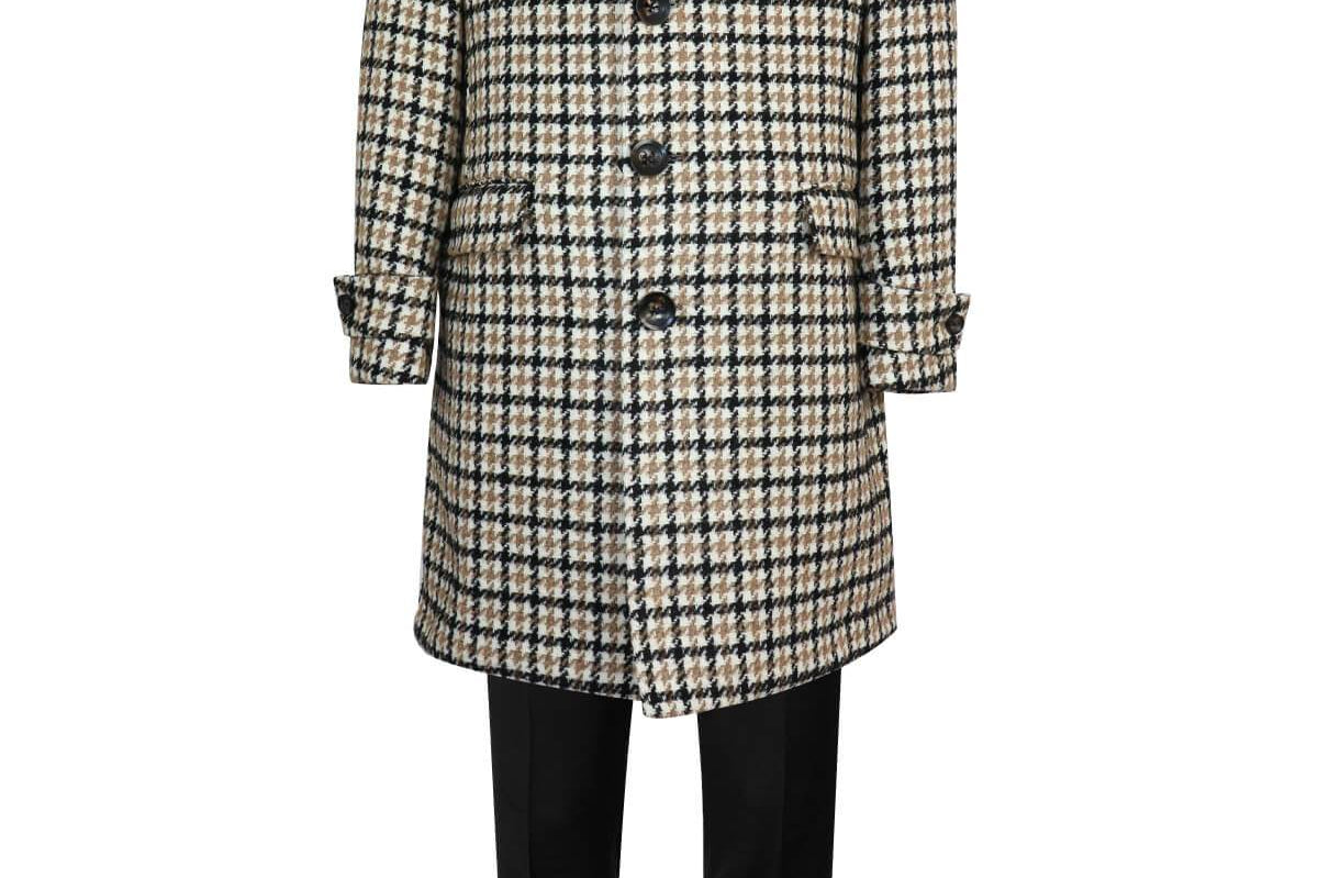 GABRIELE PASINI Checkered Overcoat in Black and Cream