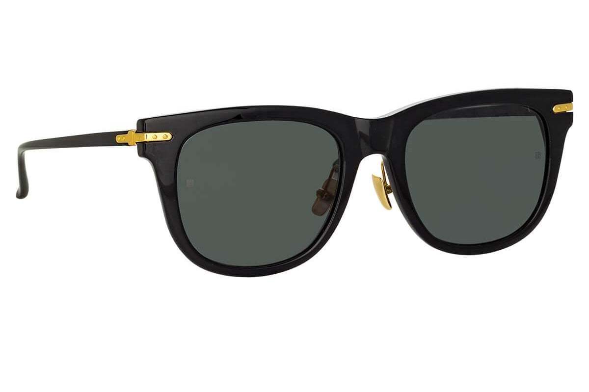LINDA FARROW Chrysler D-Frame Sunglasses In Black and 22-carat yellow gold