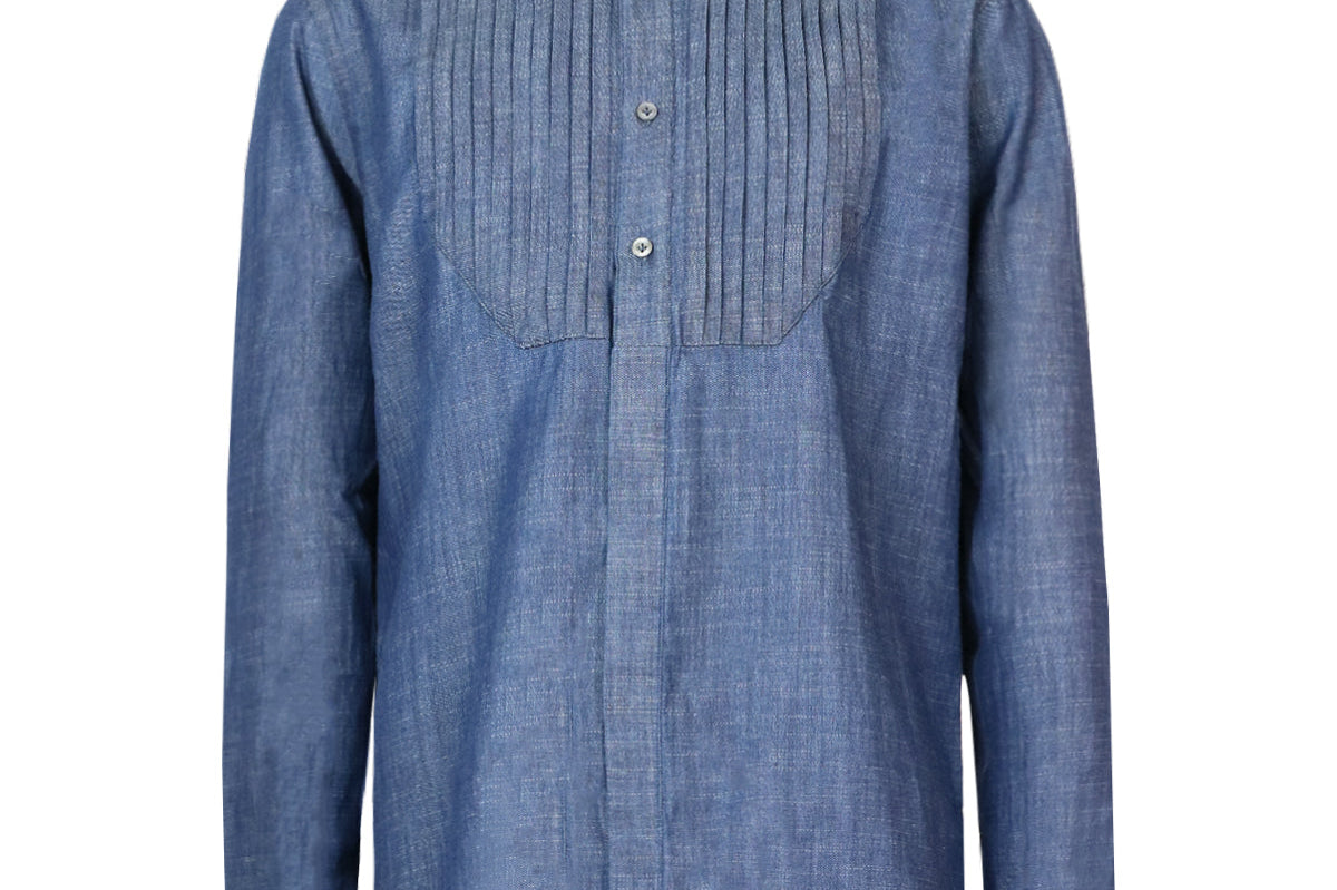 LARDINI プリーツ デニム シャツ ブルー