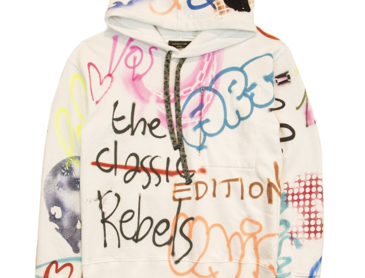 Inspired by Byzantine’s art,the bold and eye-catching graffiti elements add a contemporary twist to_Gabriele Pasini's_statement piece. Detailed with fluorescent colours and a skull-logo appliqu_ on its jacket, this hoodie displays dynamism and symbolizes a message of the future. Featuring a drawstring hood, long sleeves, a zipped chest pocket and ribbed hem and cuffs, complete the street style look with matching sweatpants.
