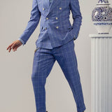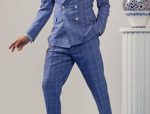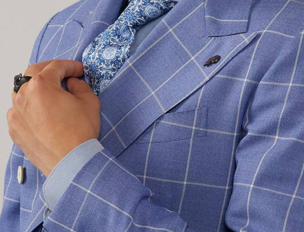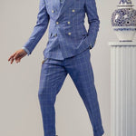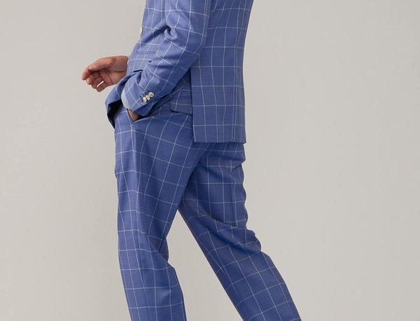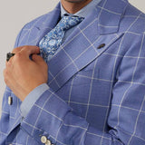 2-Piece Wool Suit in Blue Windowpane Plaid