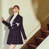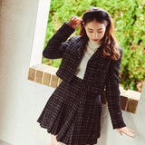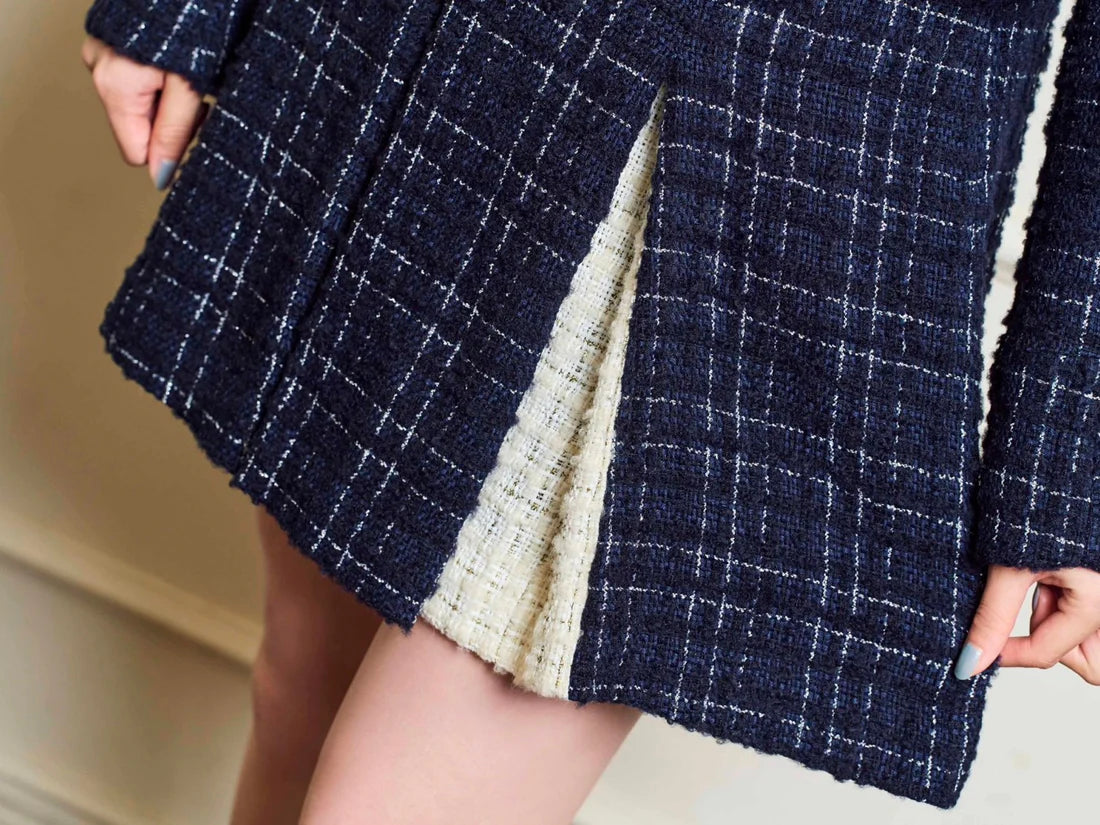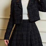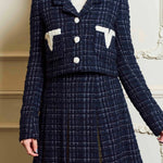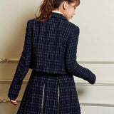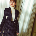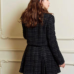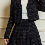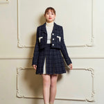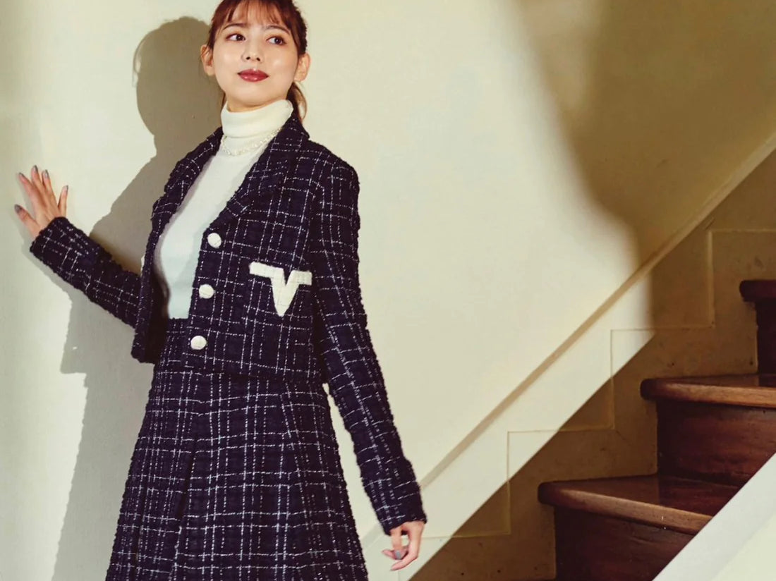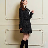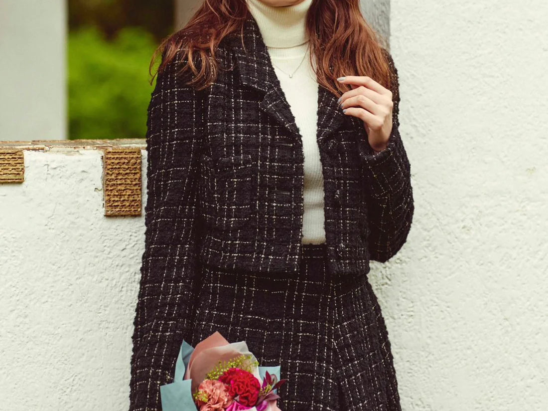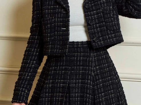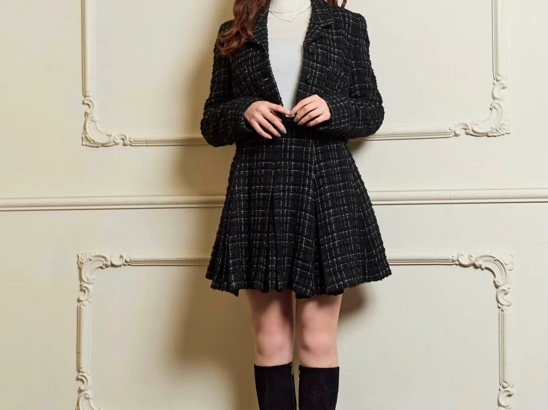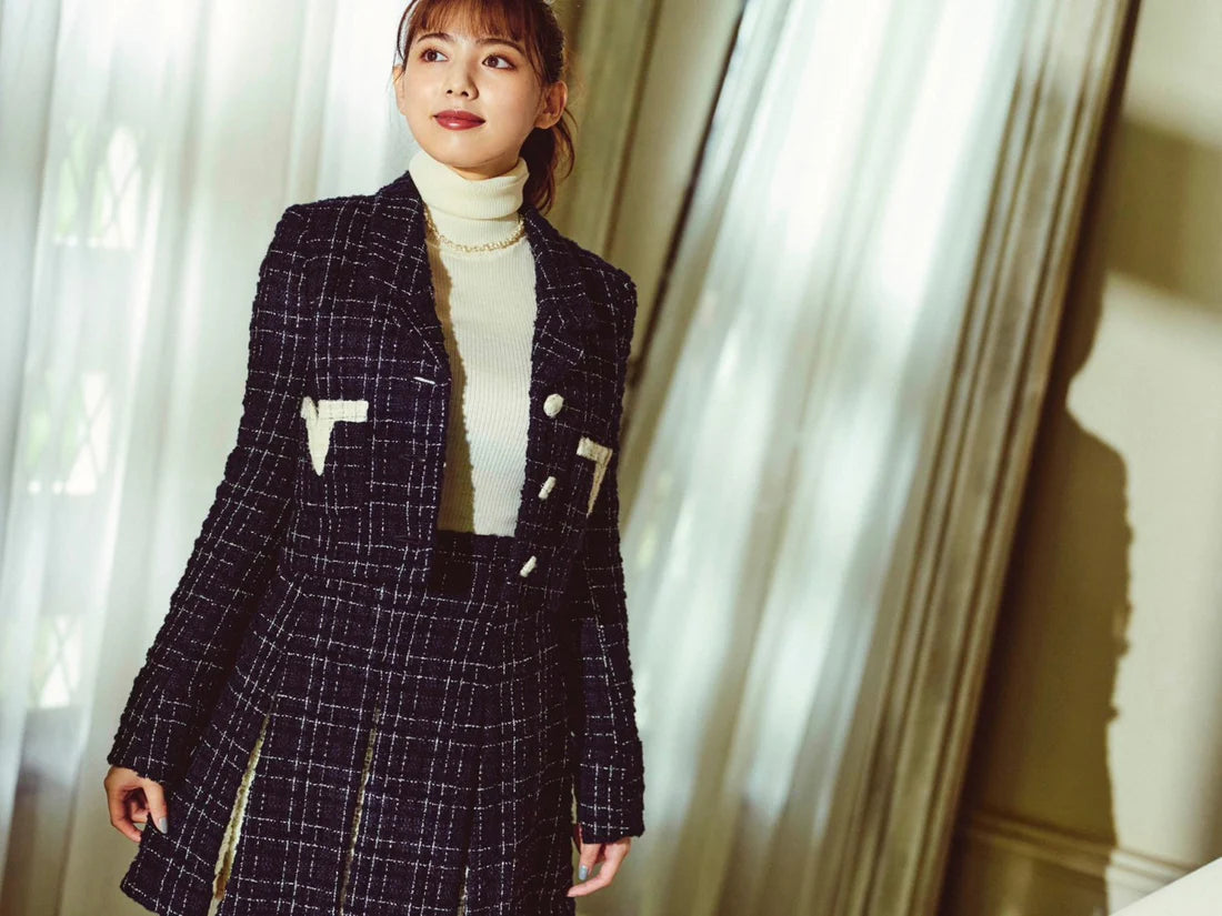 This tweed skirt has a classic look with checks that look like they were drawn with chalk. The box pleats sway with each movement, creating a cute, mature design. Match it with a jacket made of the same material for a well-balanced set-up style. It also looks great with a blouse or colored knit for an elegant casual style. The skirt is made of high quality tweed material and is a piece that can be used for a long time without being influenced by trends.