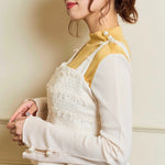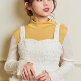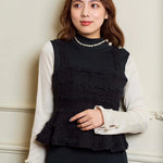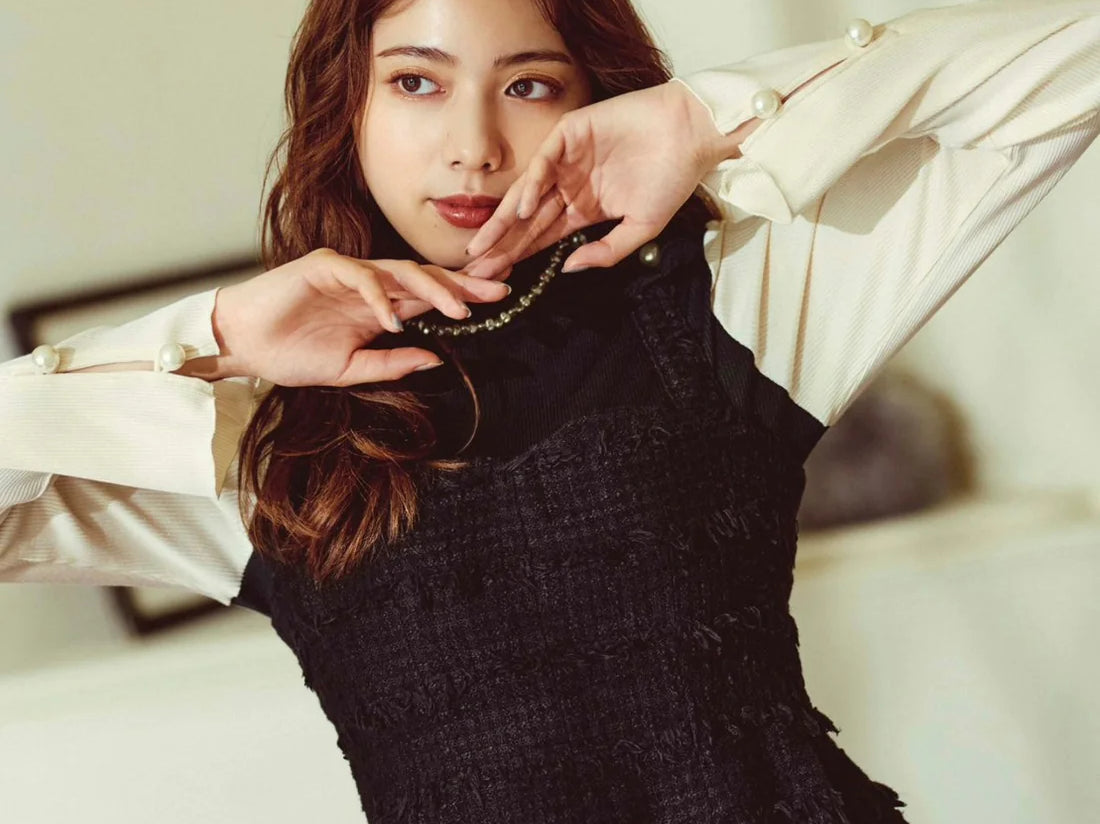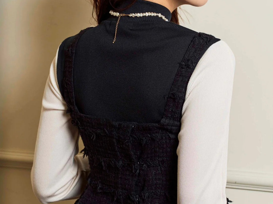 Simply layer it over a simple top such as a cut-and-sew or blouse to complete your seasonal styling. The hooks at the back allow for two-size adjustment, so it can be worn with thicker innerwear as well.