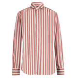 リピートして着たくなる、おしゃれなストライプシャツです。スリムフィット、ボタン留め、クラシックカラー、長袖、ラウンドカフススリーブ。ブレザーの下にスタイリングしたり、タックを入れずにニュートラルなパンツに合わせて洗練されたスタイルを演出します。