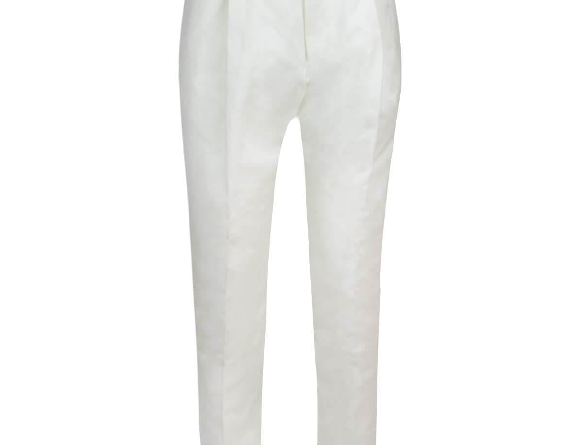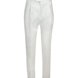 CARUSO Hopsack Cotton Blend Pleated Pants in Cream