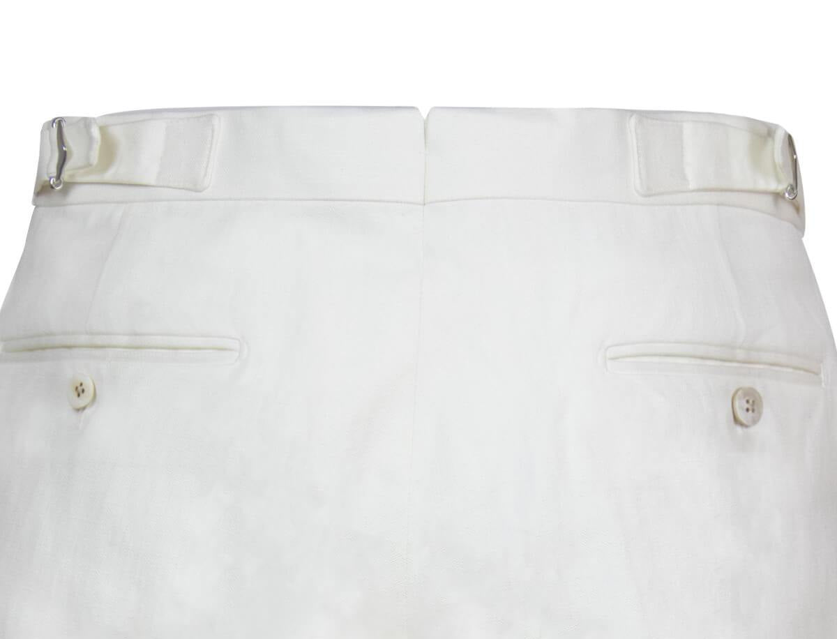 Caruso crafts these cream trousers from a blend of cotton and linen that�fs finely basket woven for impeccable breathability. Tailored in Italy with traditional buckled waistband adjusters, they have button-through jetted back pockets and pleats that fall into neatly pressed creases on the slim-cut legs.