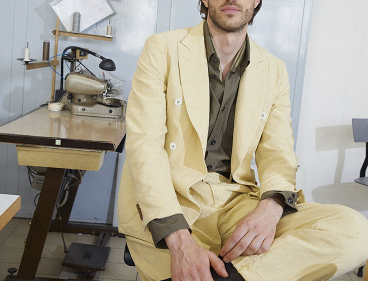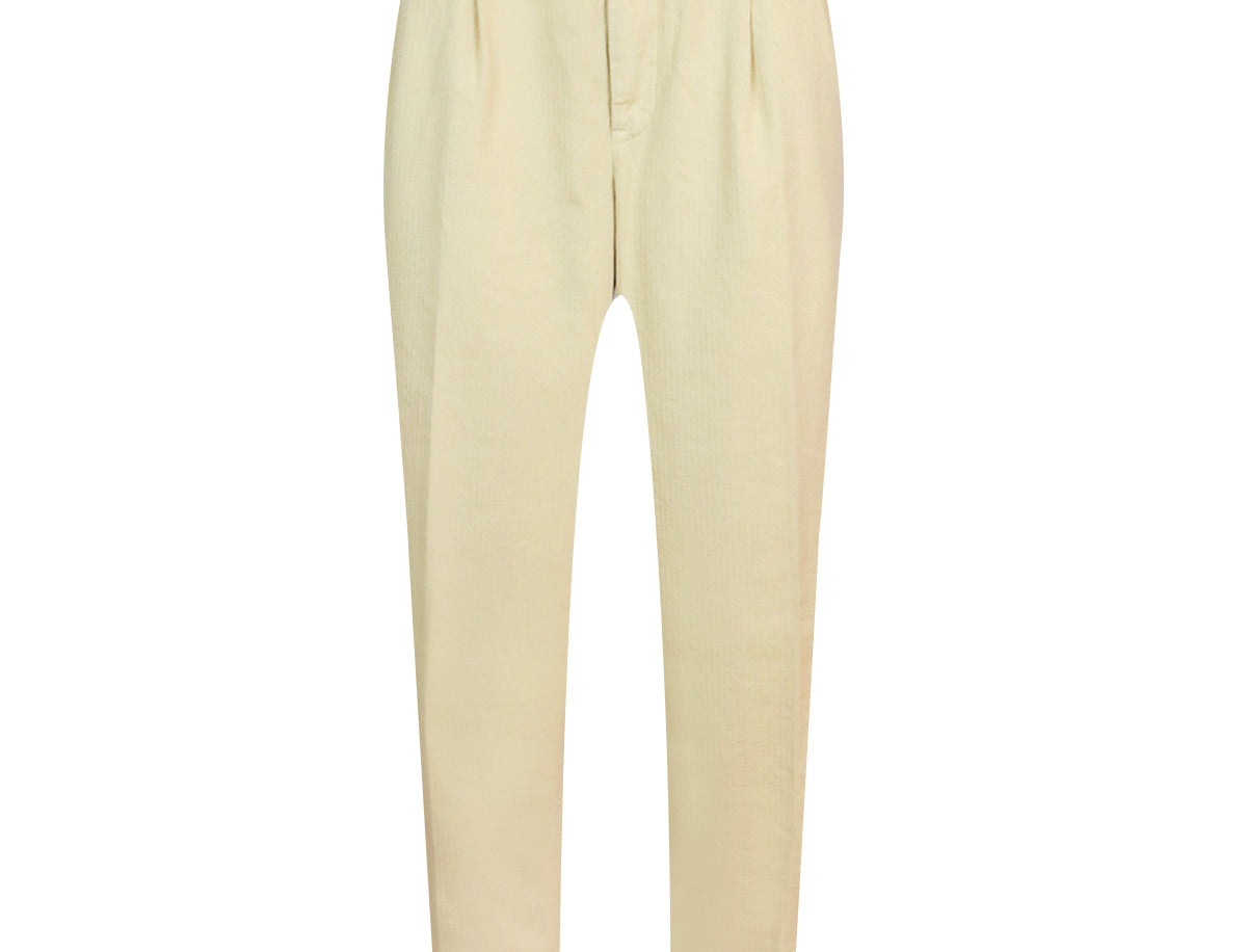 Crafted from 100% cotton in a_muted yellow hue, this classic trouser features a branded button closure, functional pockets, and an expertly tailored fit for a relaxed everyday look. Pair it with a dark shirt for added sophistication and throw on the matching jacket for a coordinated edit you can't go wrong with.