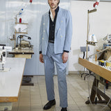 Crafted from high-quality, lightweight cotton, this classic trouser is tailored into a relaxed everyday fit in a shade of muted blue_perfect for the cheerier seasons. Featuring a branded button closure, functional pockets and raw hems, pair it with a dark shirt for added sophistication, or a light-coloured tee for a casual fit and_throw on_the matching jacket for a coordinated edit you can't go wrong with._