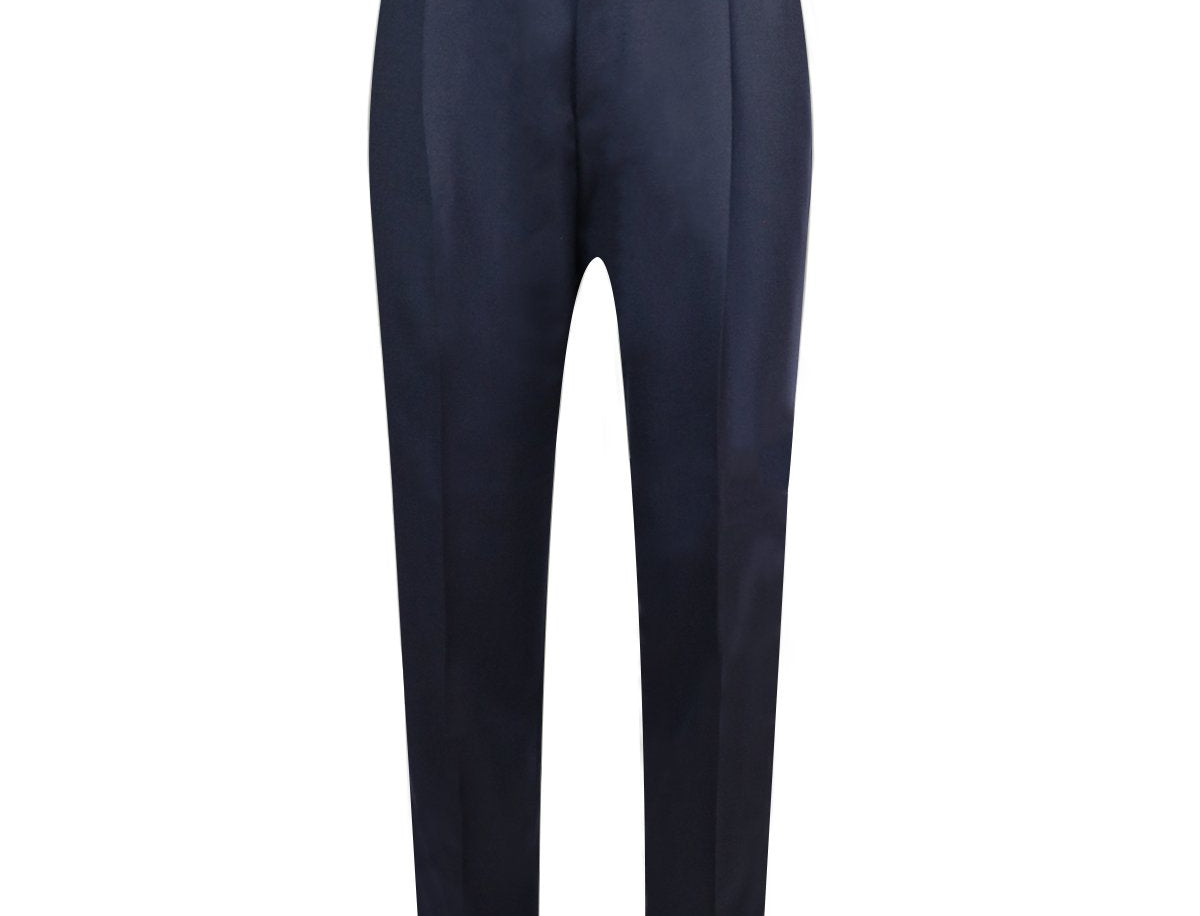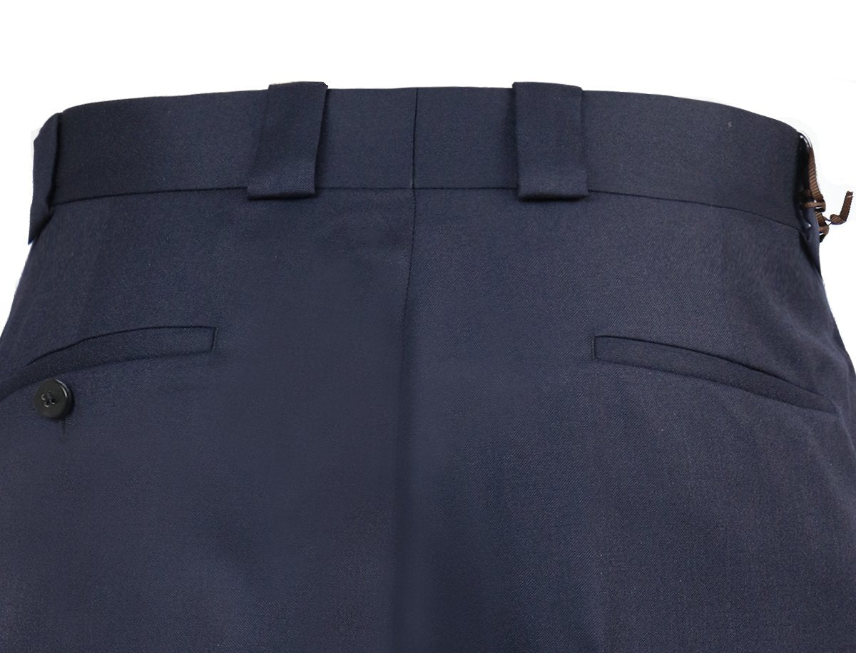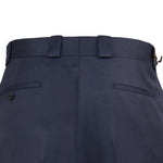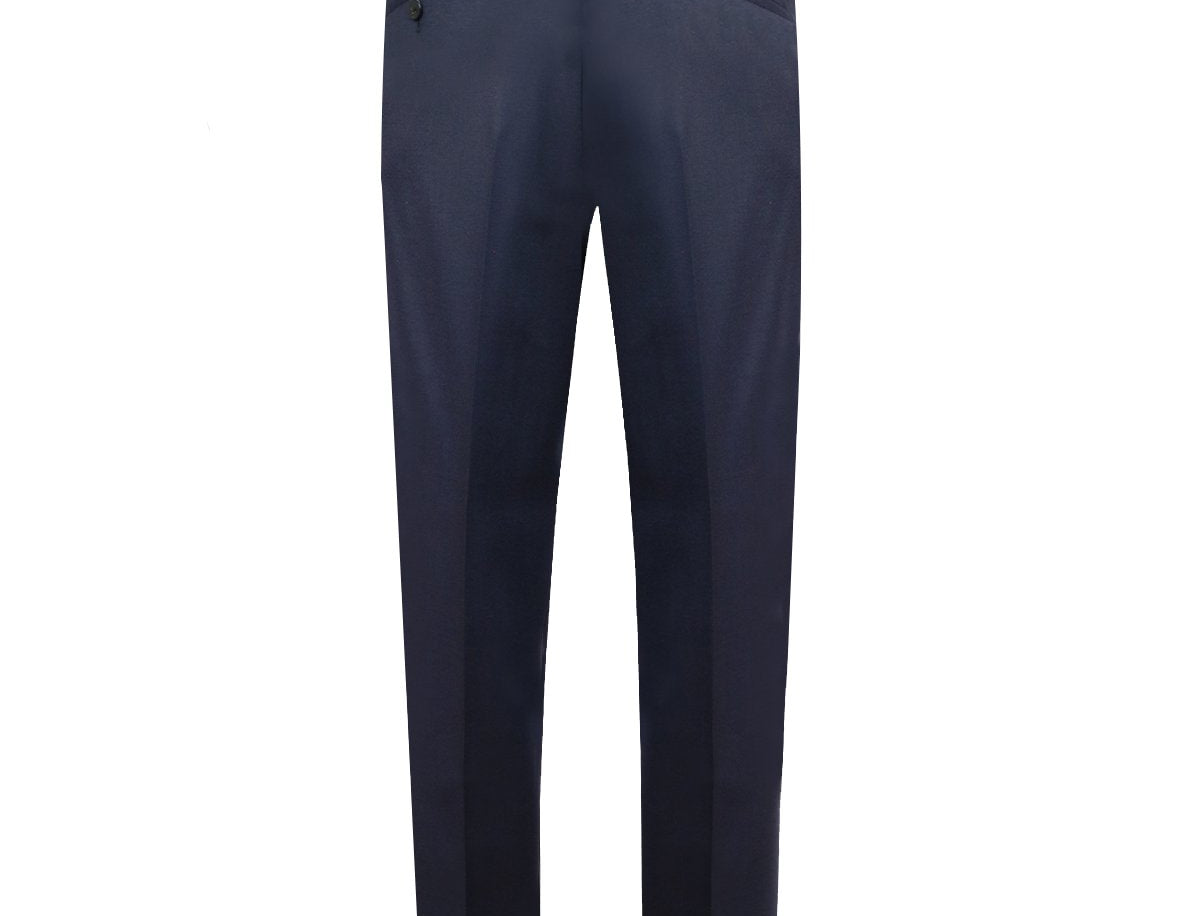 Crafted from 100% luxurious wool, these Caruso navy trousers with neatly pressed pleats keep you warm on the go with style. Equipped with belt loops, hidden closures, and 2 welted pockets at the back._Pair it with a light-coloured shirt and a navy blazer over it for that smart-casual look._