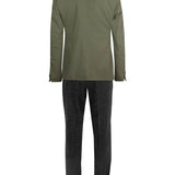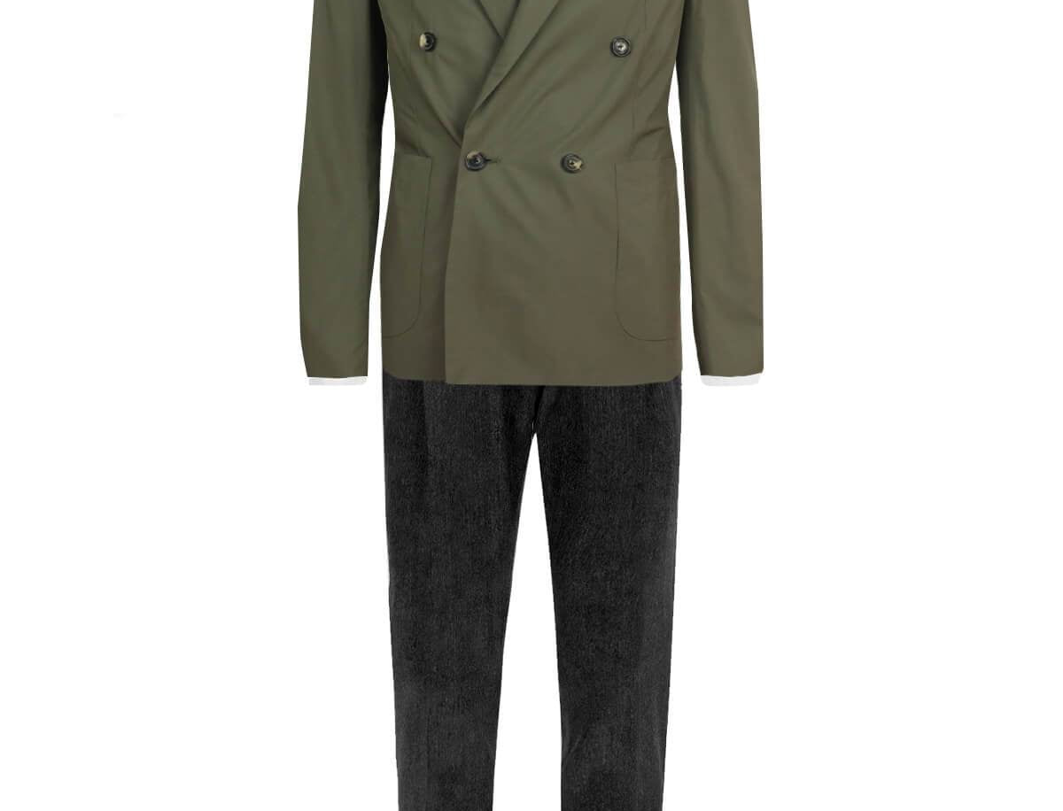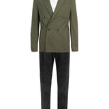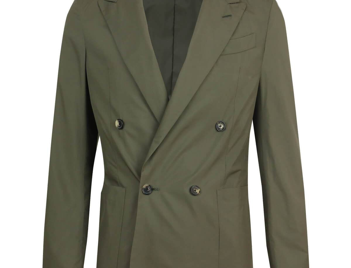 CARUSO Ponza Double-Breasted Twill Blazer in Khaki Green