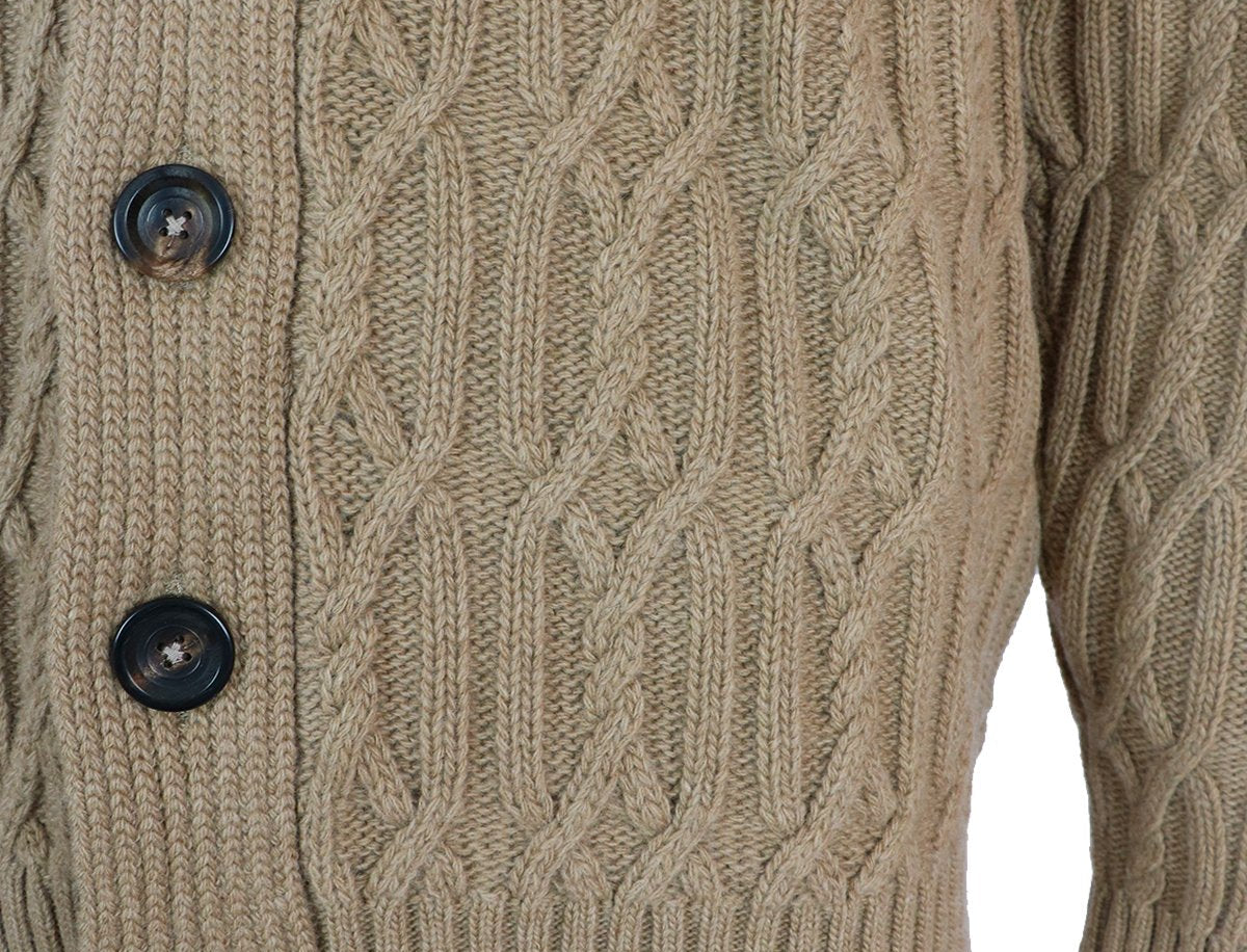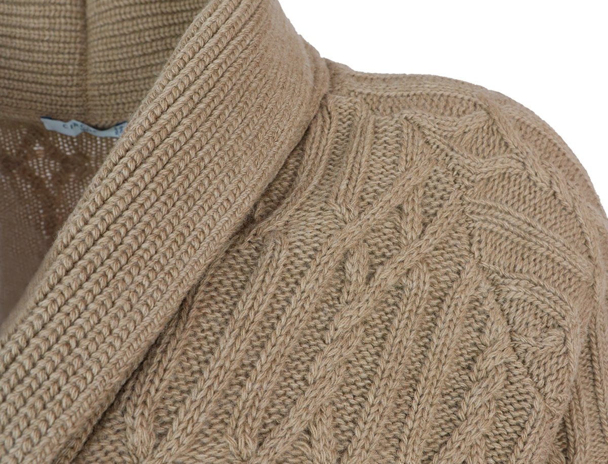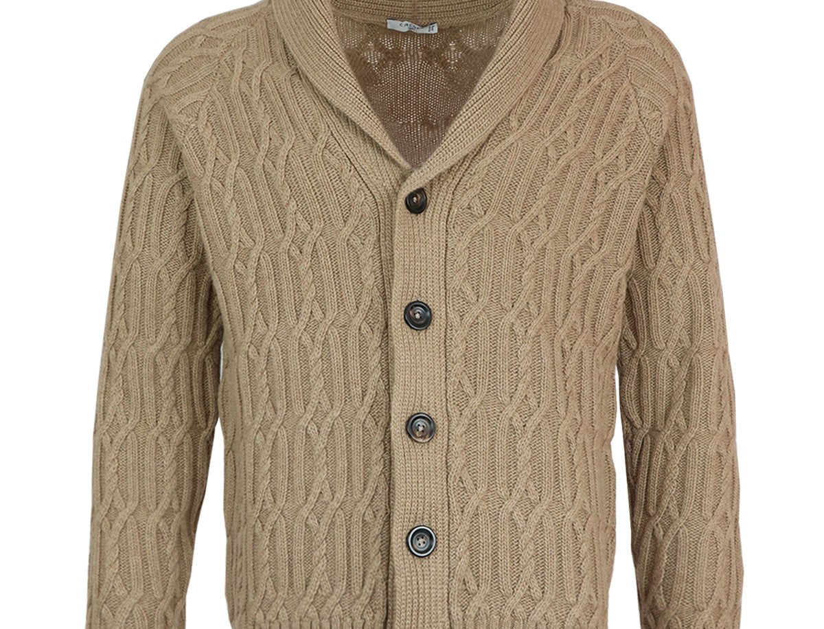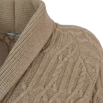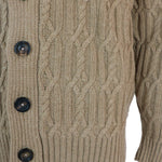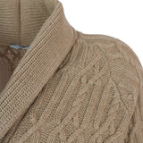 高品質のウール 100% で作られた、カーキのゴージャスな Circolo 1901 ケーブル ニット カーディガンは、秋の寒い日に欠かせないアイテムです。幅広のラペル、リブ編みの袖口と裾、クラシックなボタンダウンスタイルの大きなコントラストのある黒いボタンが、複雑なニットパターンの美しさを引き立てています。ダークカラーのパンツとブーツに合わせて、居心地の良いカジュアルなルックを完成させましょう。