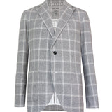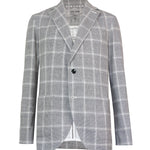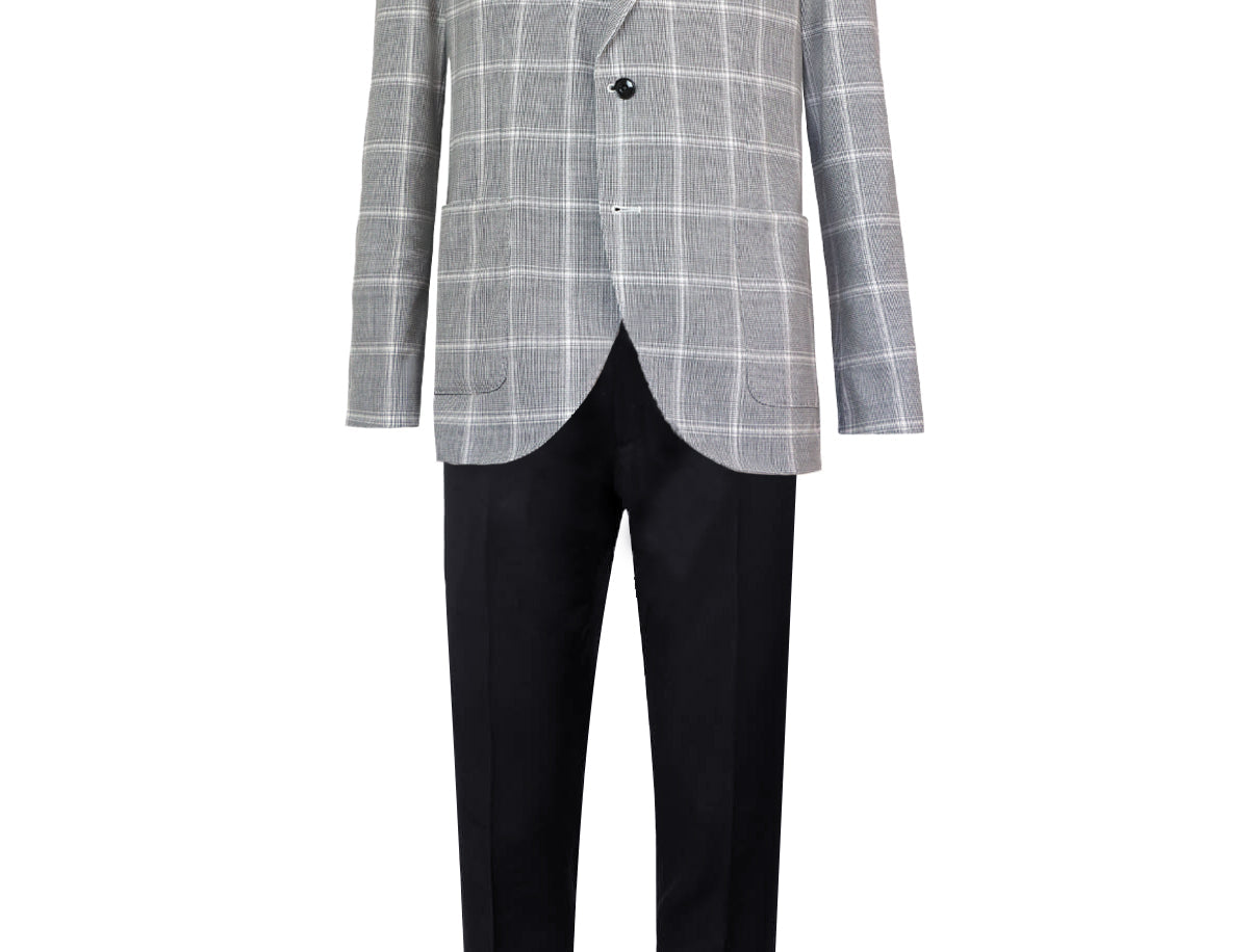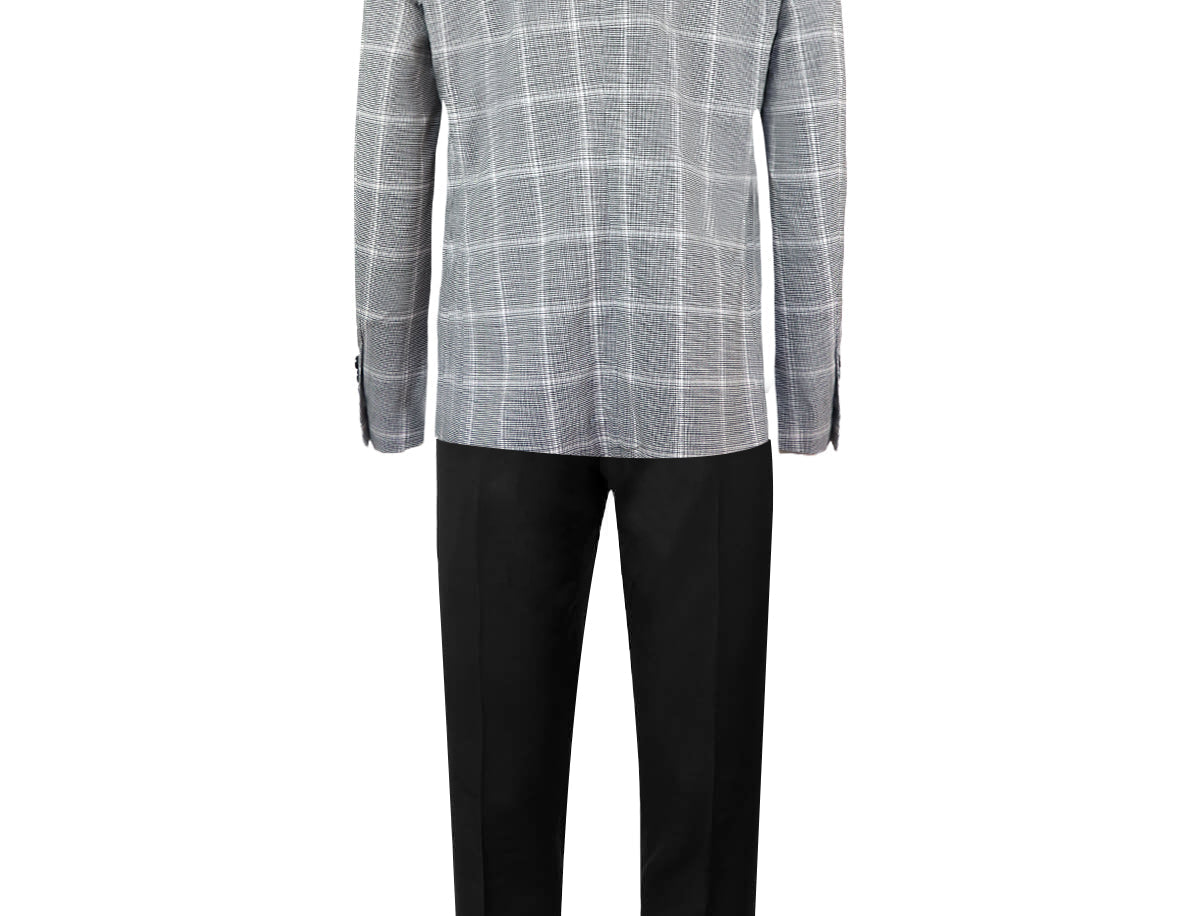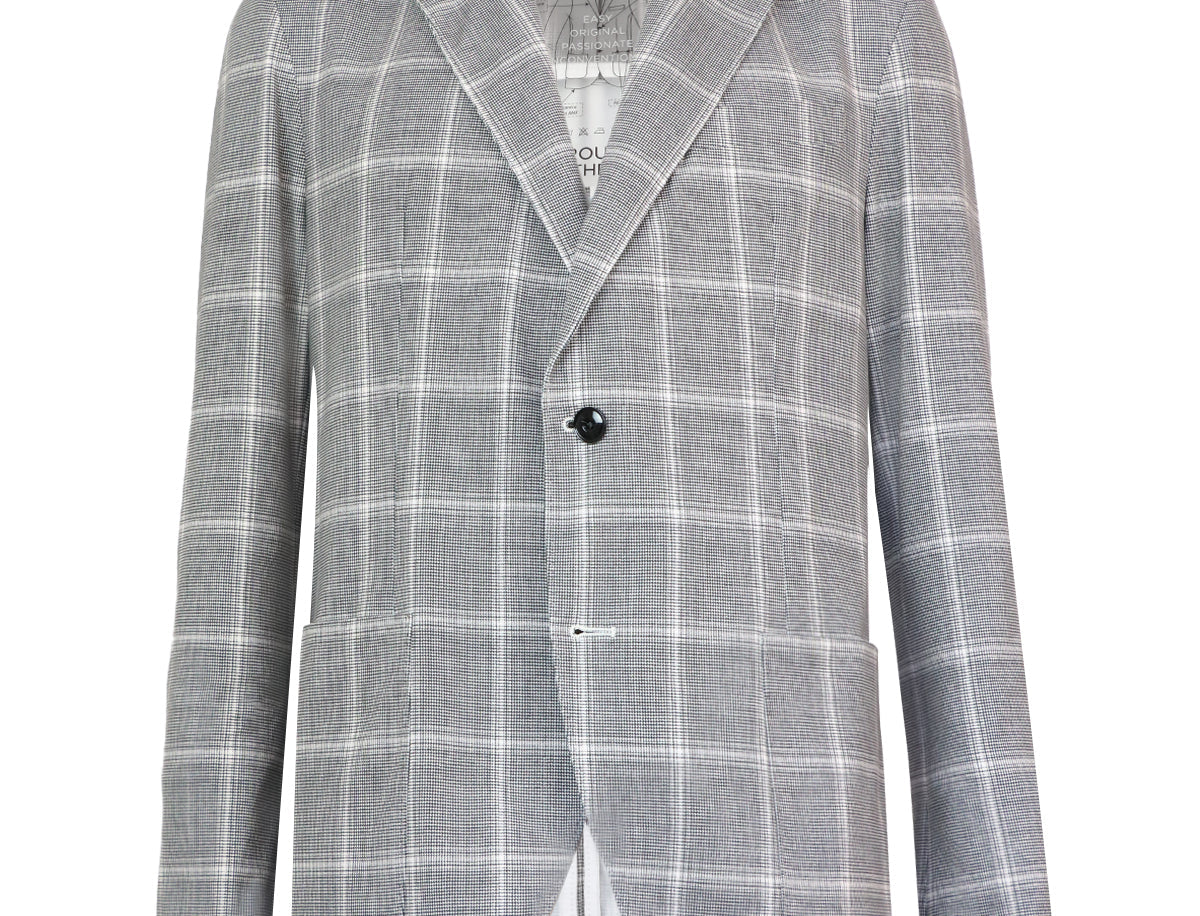 間違いのないクラシックなチェック柄のこの軽量の重ね着アイテムで、夏のワードローブを格上げしてください。コントラストの効いた黒のボタン、ツイン バック ベント、機能性を高めるポケットが特徴で、テーラードな黒のスラックスと合わせて現代的なフィット感を完成させましょう。