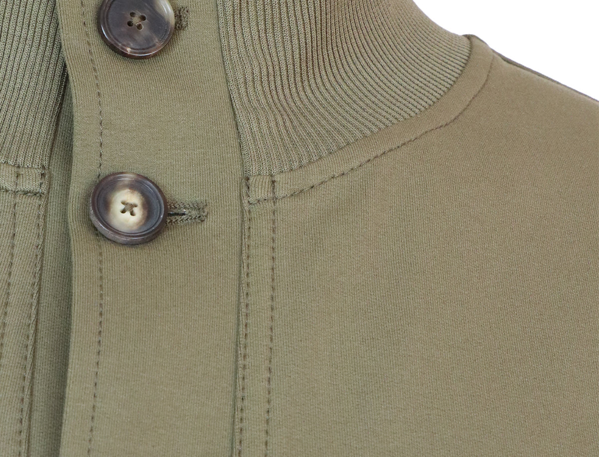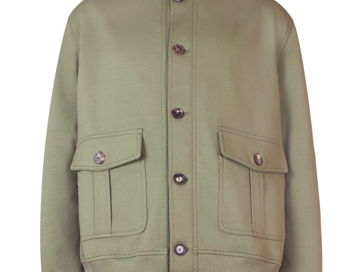 丈夫なコットンブレンドで作られた実用的なスタイルのブラウスジャケットで、ハイネック、べっ甲ボタン、伸縮性のある袖口と裾が特徴の重ね着アイテムです。テーラードパンツと合わせて、エッジの効いたスタイリッシュなスタイルを演出しましょう。