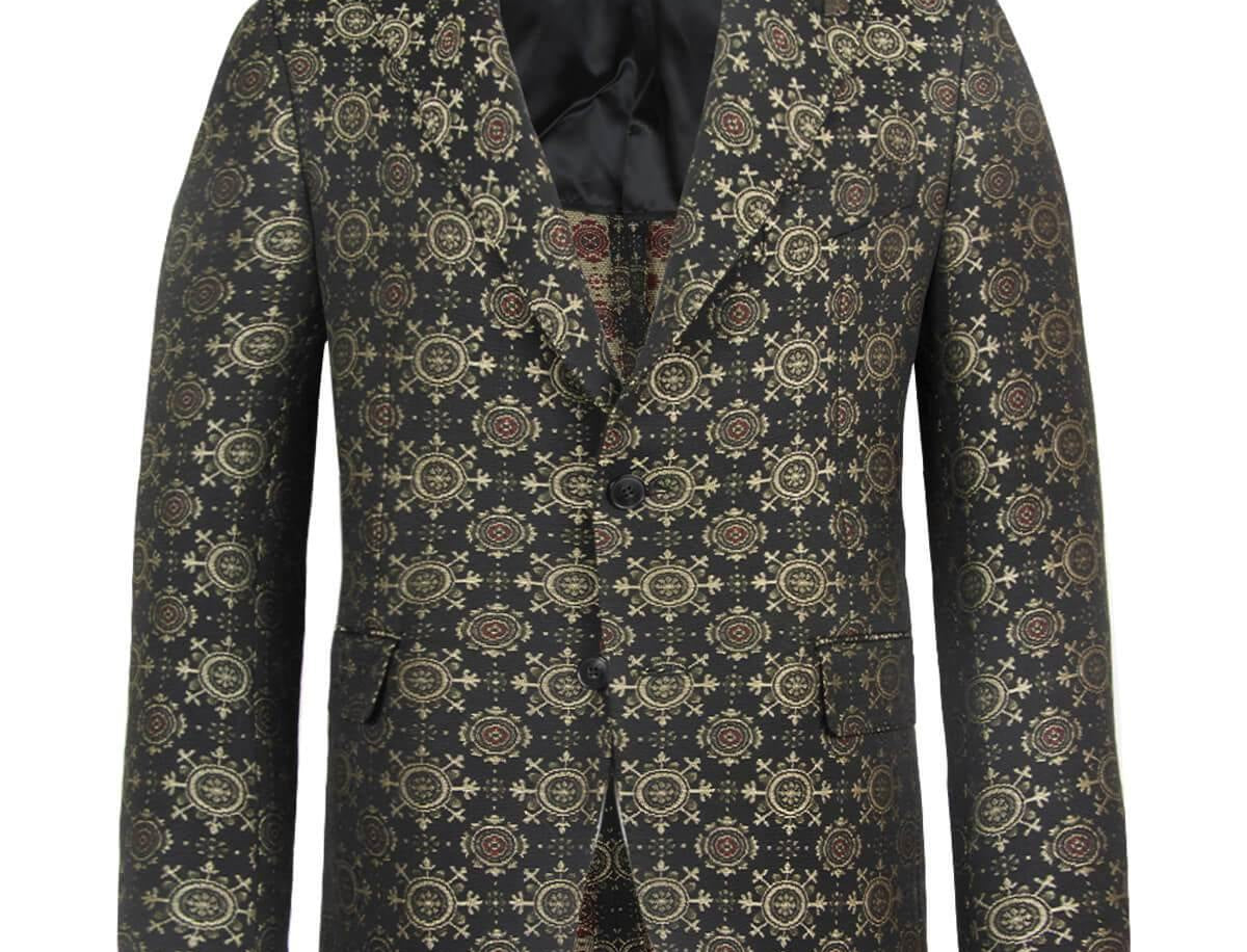 GABRIELE PASINI Single-breasted Embroidered Blazer in Black/ Multi Jacquard