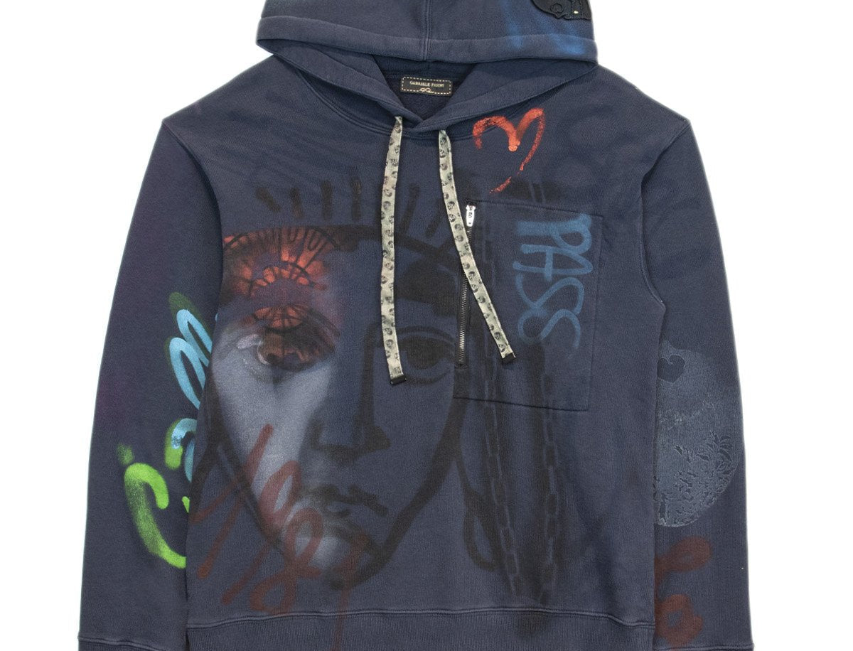 Inspired by Byzantine's art, the bold and eye-catching graffiti elements add a contemporary twist to_Gabriele Pasini's_statement piece. Detailed with fluorescent colours and a skull-logo appliqu_ on its jacket, this hoodie displays dynamism and symbolizes a message of the future. Featuring a drawstring hood, long sleeves, a zipped chest pocket and ribbed hem and cuffs, complete the street style look with matching sweatpants.