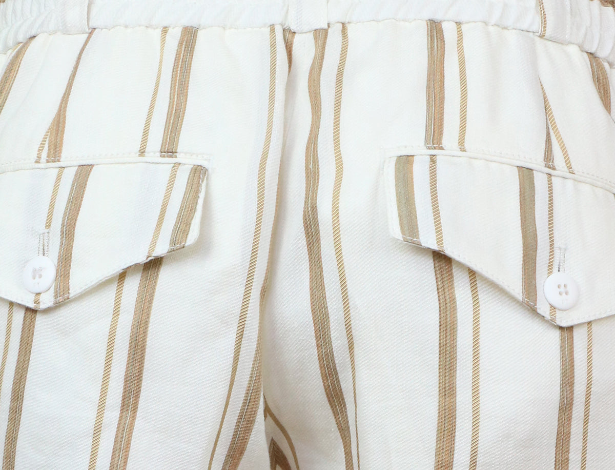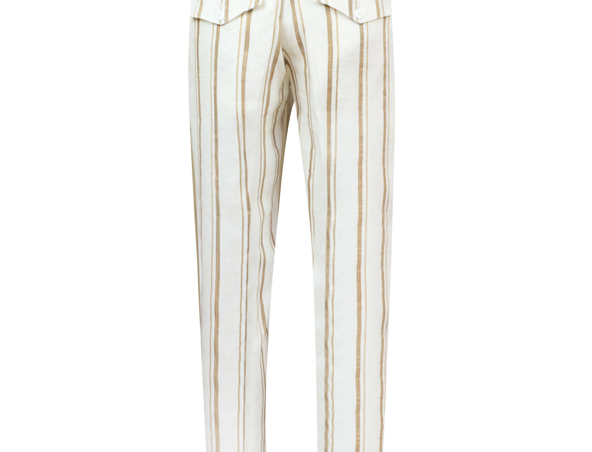陽気で楽しいこの季節に向けて、ストライプをさらに進化させたこのスリムカットのシルエットは、機能的なポケット、ベルトループ、ボタン留めの延長ウエストバンドが特徴です。この主張のあるアイテムをベーシックな T シャツと合わせてスタイルのバランスを整え、お気に入りのスニーカーを合わせてください。