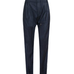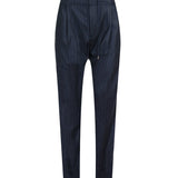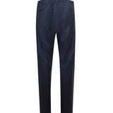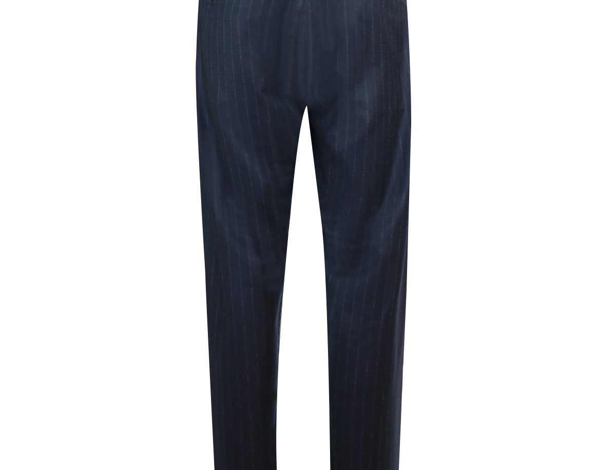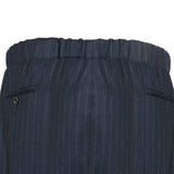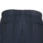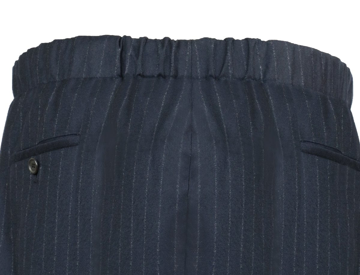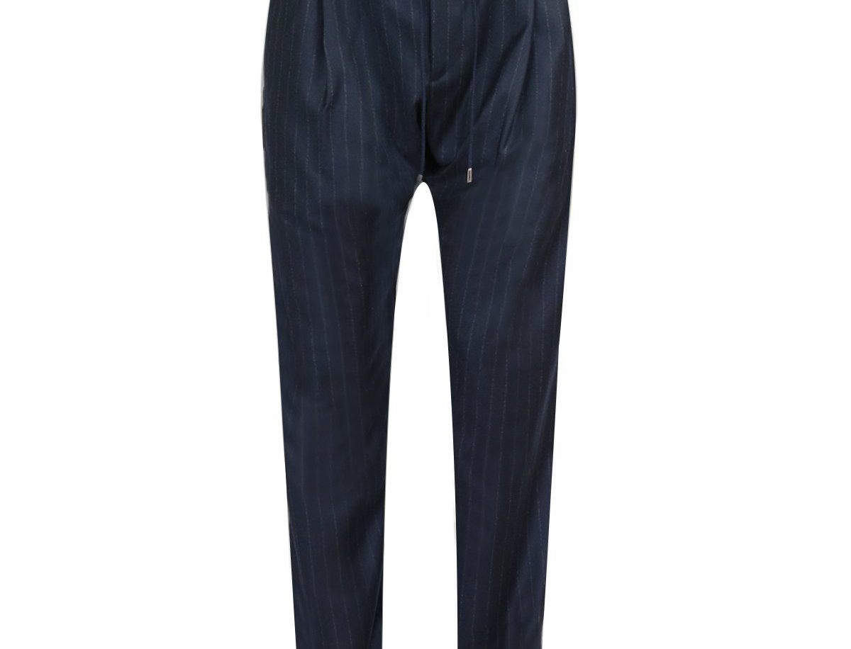 Stride the streets in style with Caruso's sleek drawstring pants in dark blue with a faint pinstripes pattern. Conveniently fitted with two front side pockets and two back pockets, this piece made of 100% luxurious wool comes with an elasticated waistband and drawstring fastening for absolute comfort. Tuck in a simple white shirt to complete the relaxed-casual look.