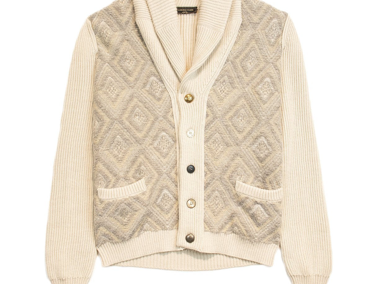 Shawl-Collared Wool Cardigan in Cream