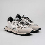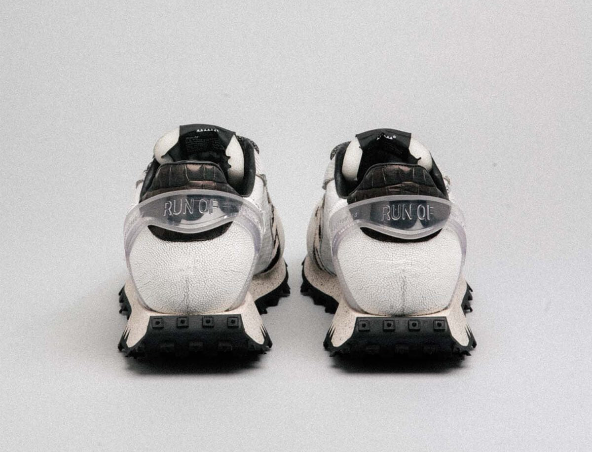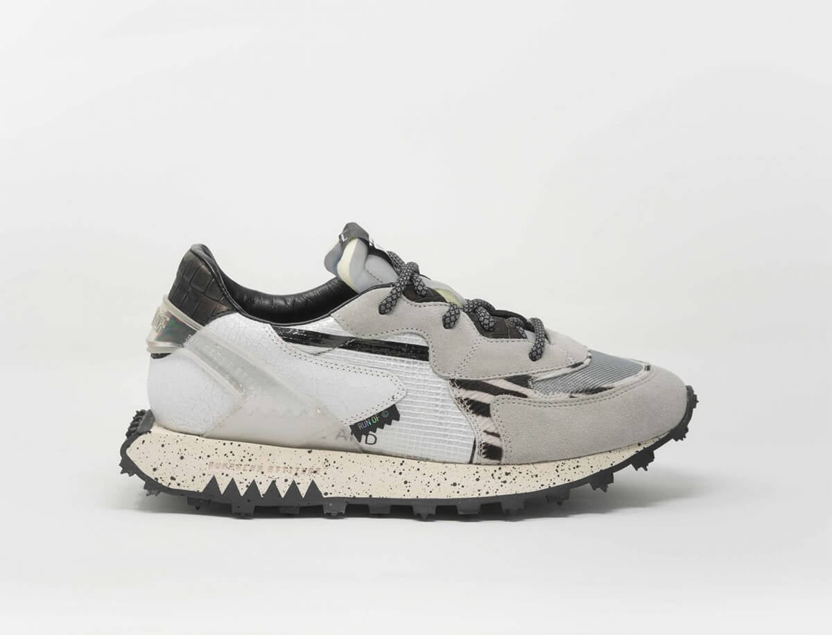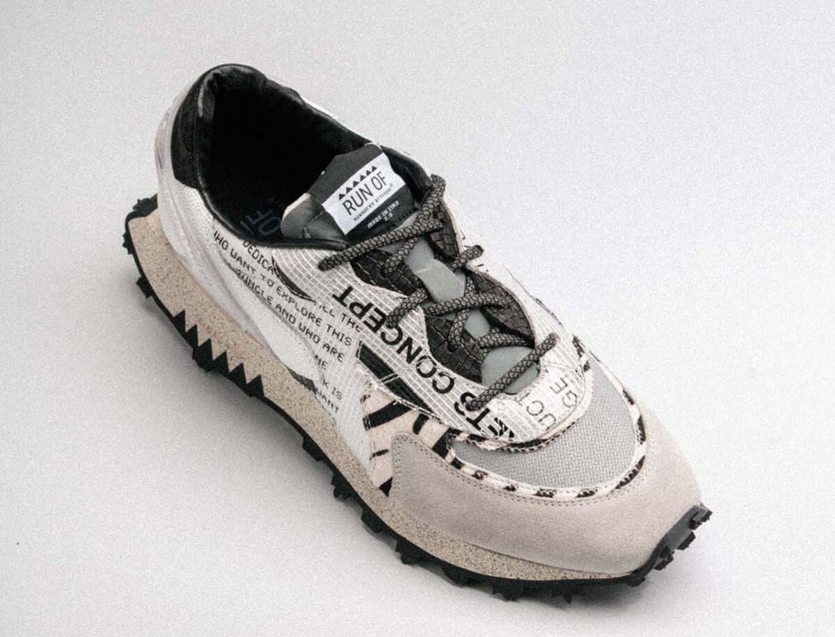 Shuttle is the upcycled creation of unsold ripstop nylon bags and the beginning of RUN OF commitment to sustainability. The unisex shoes are lined with soft and durable nubuck leather, and the footbed made of memory gel offers extra support and comfort. The thoughtful combination of warehouse materials and the process of hand die-cutting gives these limited edition sneakers exclusivity like no other.