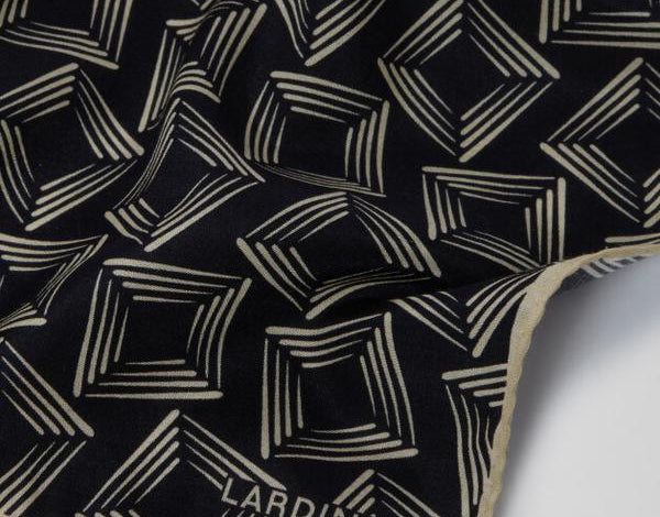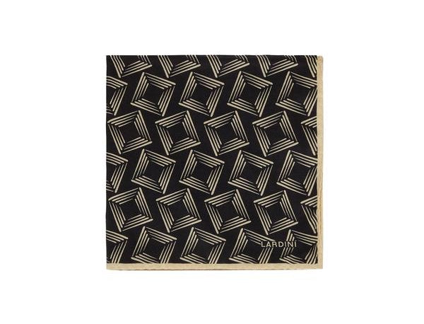 Make a debonair impression with Lardini's stylish pocket square._Featuring a 30x30 lightweight square body, a contrasting stitched_hem,_branded_letter logo and_elegant all-over geometrical print in black and cream.