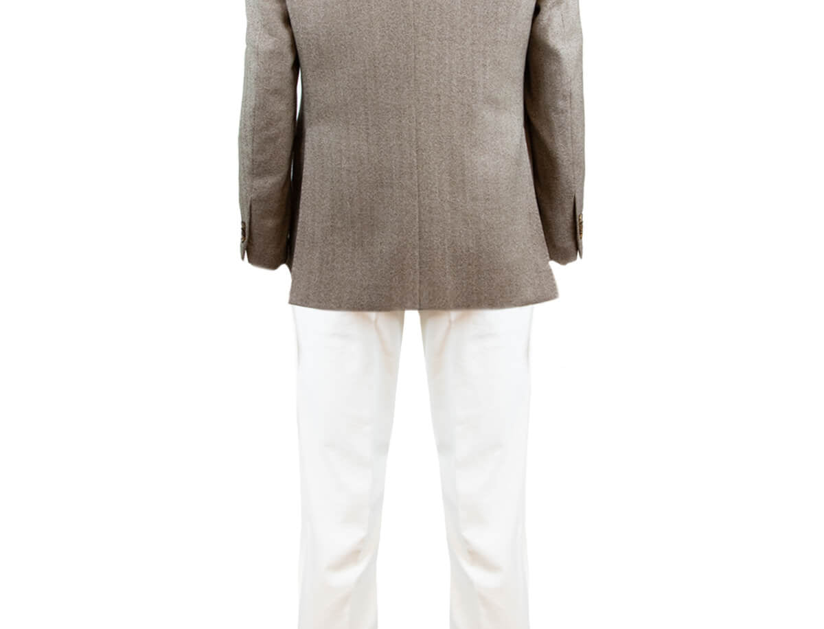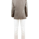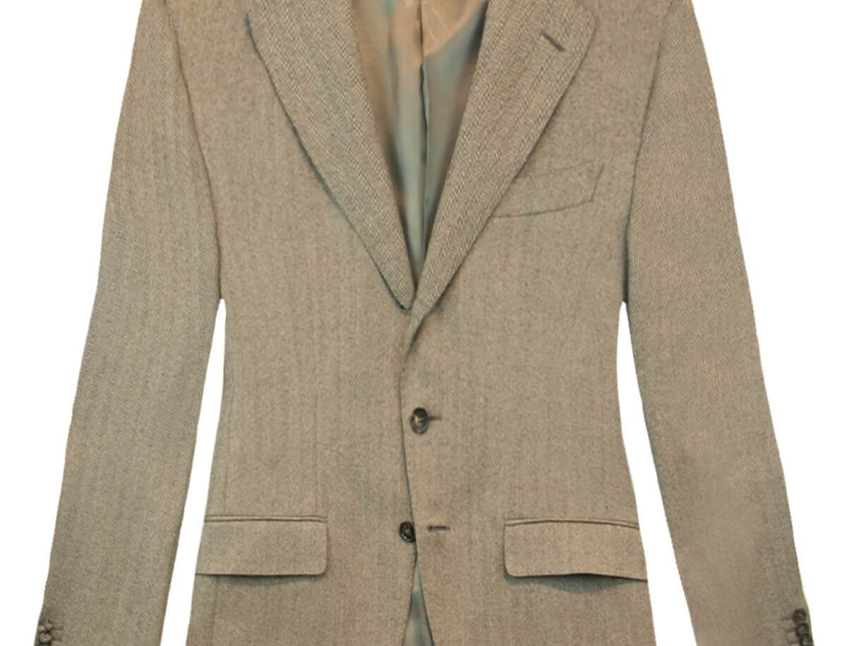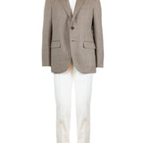 Single-breasted Herringbone Wool Blazer in Light Brown