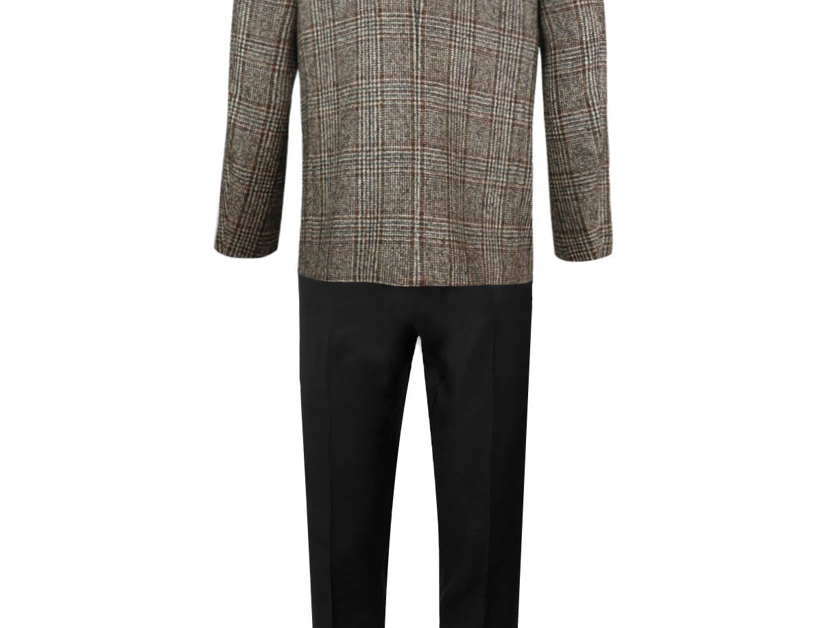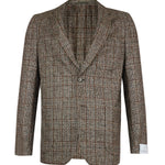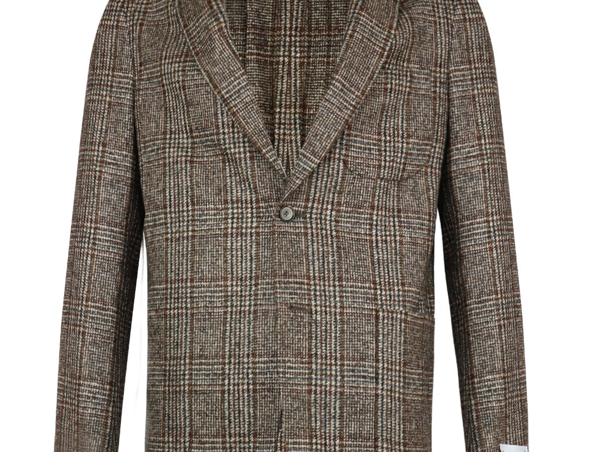 CARUSO Single-Breasted Wool-Blend Jacket in Brown Plaid