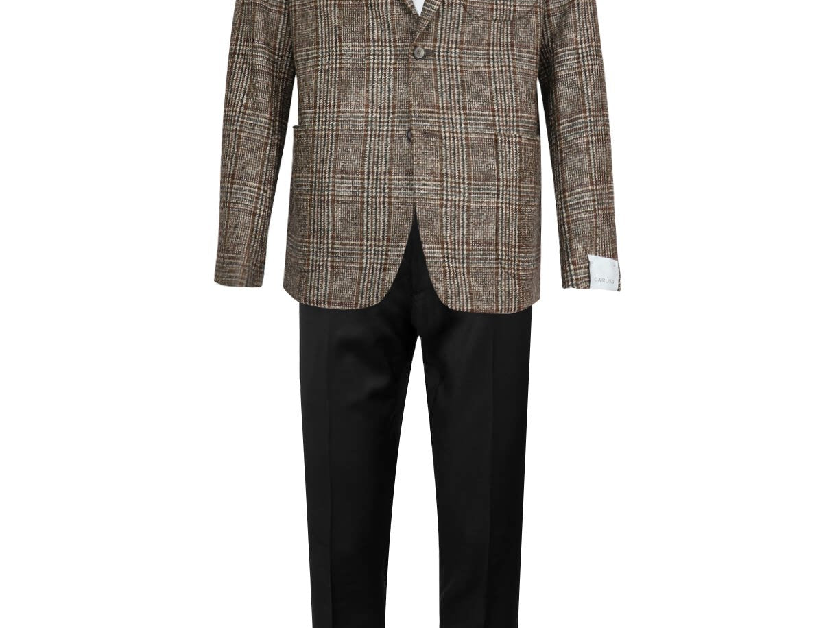 Spun with a delicate blend of luxurious wool and baby alpaca yarn, this Caruso single-breasted plaid jacket instantly styles up any outfit with its subtle shades of brown, black, and white. Comes with 2 deep patch pockets below, 1 smaller patch pocket on the left breast, and notched lapels. Complete the look with a white dress shirt and dark brown pants.